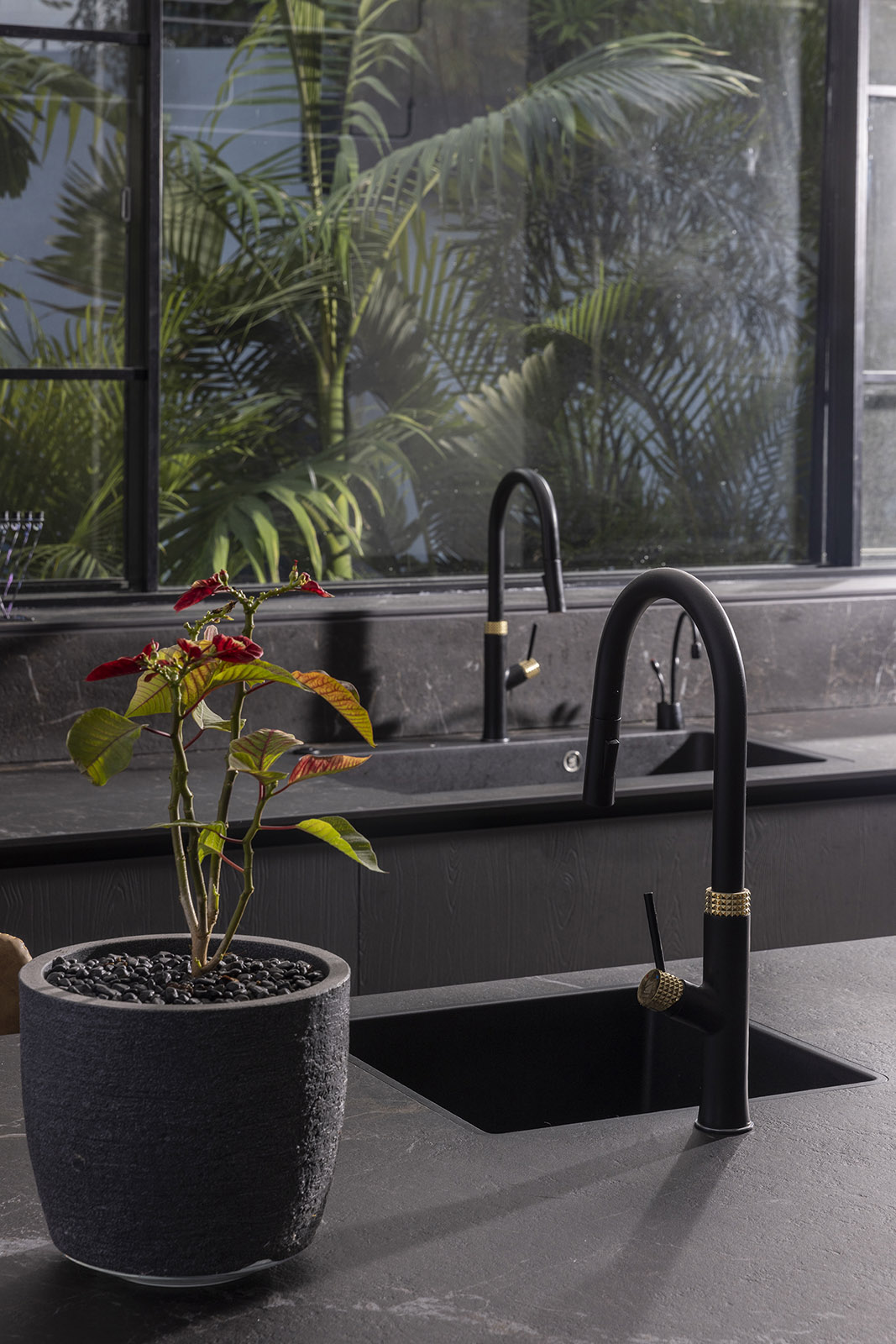 במטבחים שחורים, הפרטים הקטנים עושים הבדל גדול. שילוב נכון של מתכות יכול לשדרג את החלל לרמה של עיצוב בוטיק: